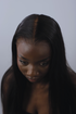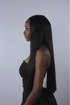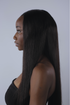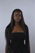 La mannequin porte une perruque lisse Double Drawn, en HD lace frontale 13x6, de 26 pouces avec une densité de 250%. Les pointes ont été coupées de 0,8 cm.