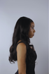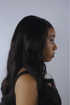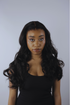 La mannequin porte une perruque body wave Double Drawn, en HD lace frontale 13x6, de 26 pouces avec une densité de 250%. Les pointes ont été coupées de 0,8 cm.